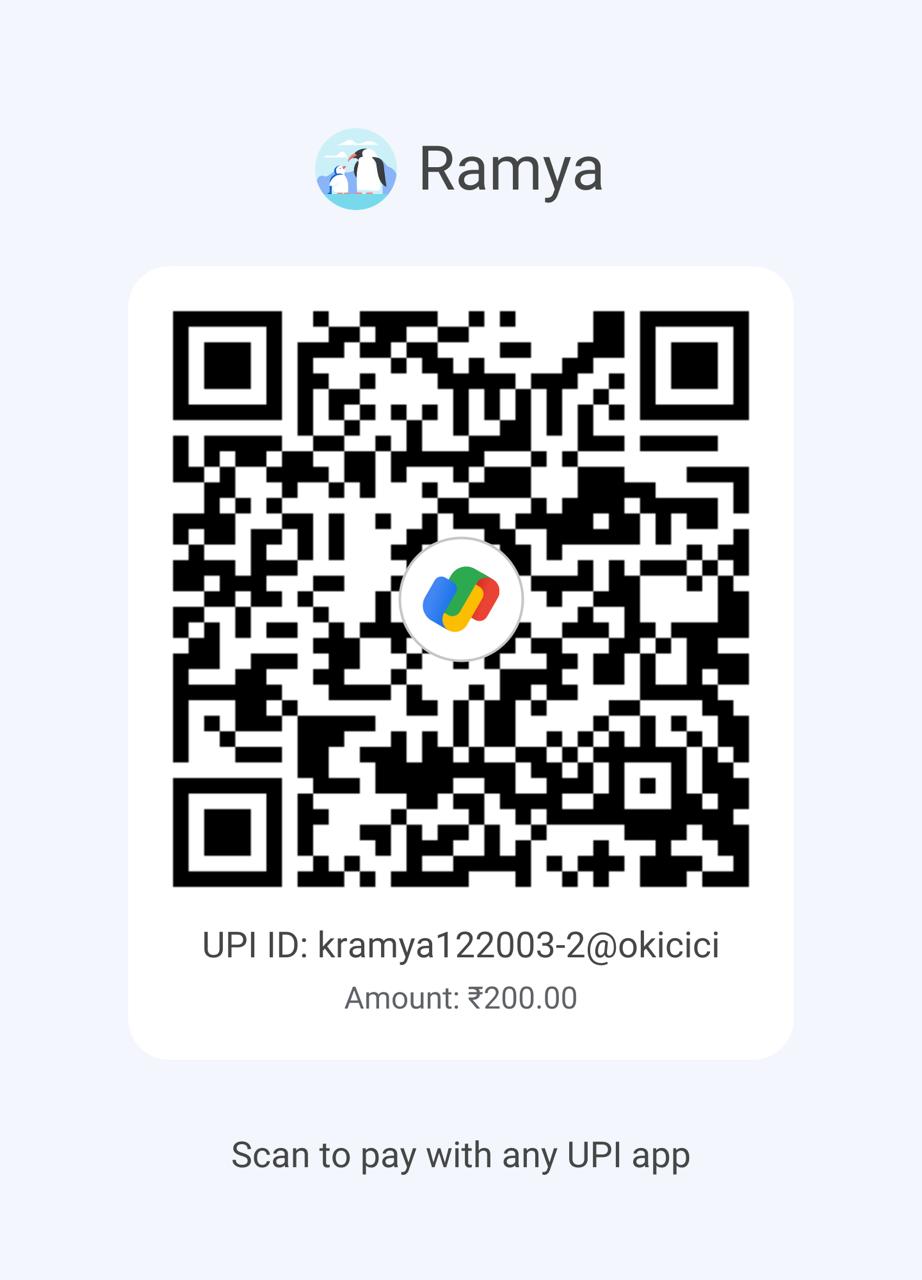 Note: If the QR code is not working, pay to the UPI id given (UPI ID: kramya122003-1@okicici )